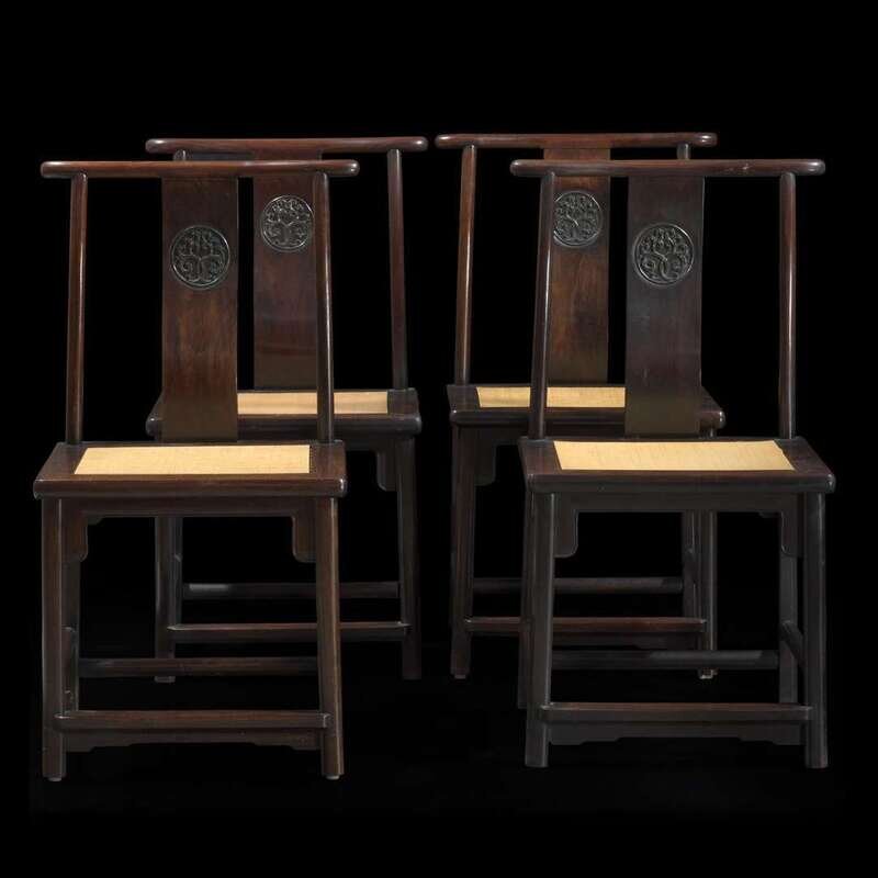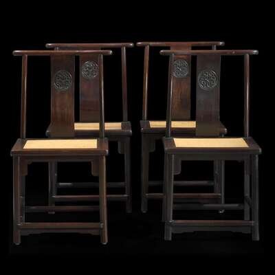 A set of four Chinese hardwood side chairs 硬木椅子一组四件 Late 19th/20th century ???????????