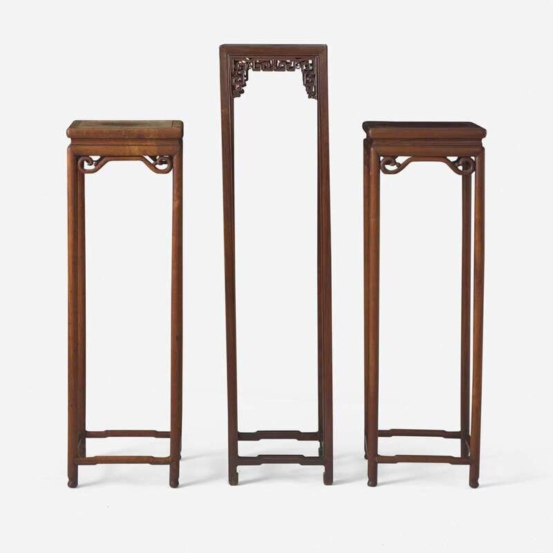 Three Chinese hardwood tall stands 香几三件 Late Qing to Republic period ?????