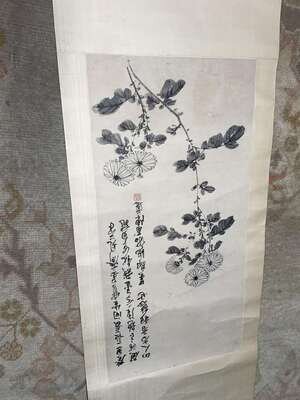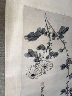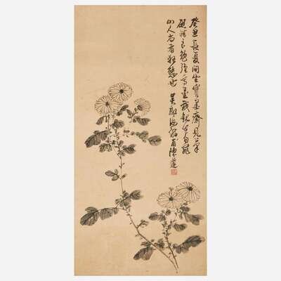 Ink on paper, inscribed and with one seal upper right; mounted as a hanging scroll.