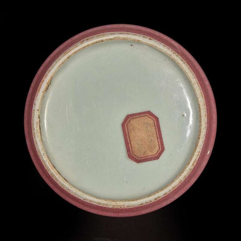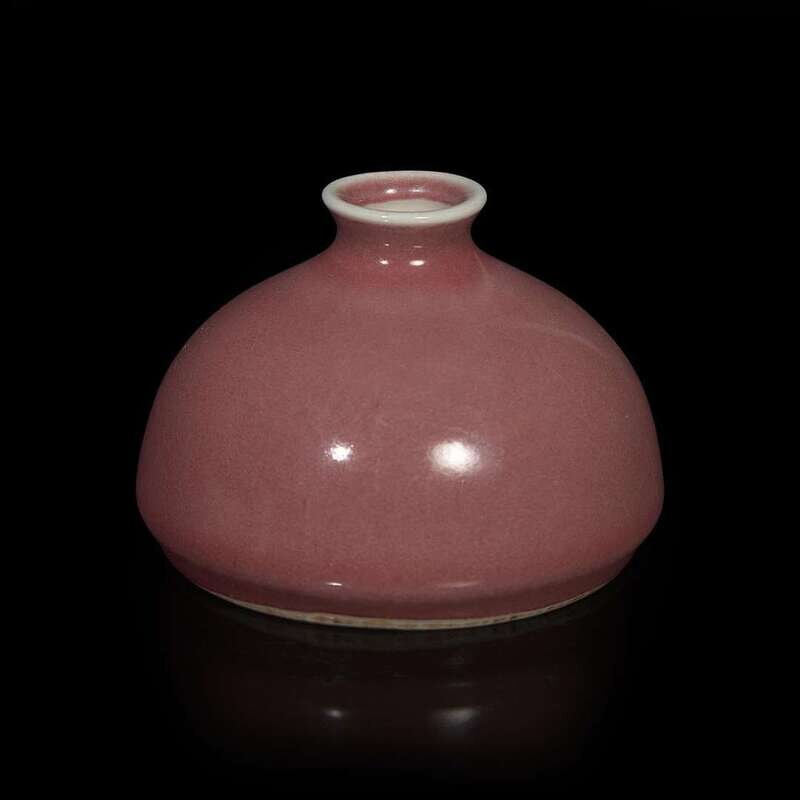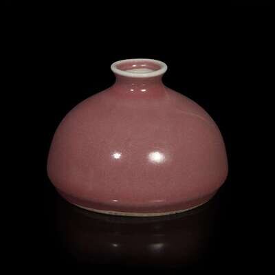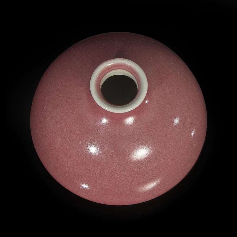 Of domical form with waisted neck and slightly flared lip, the red of a soft dusty rose tone.