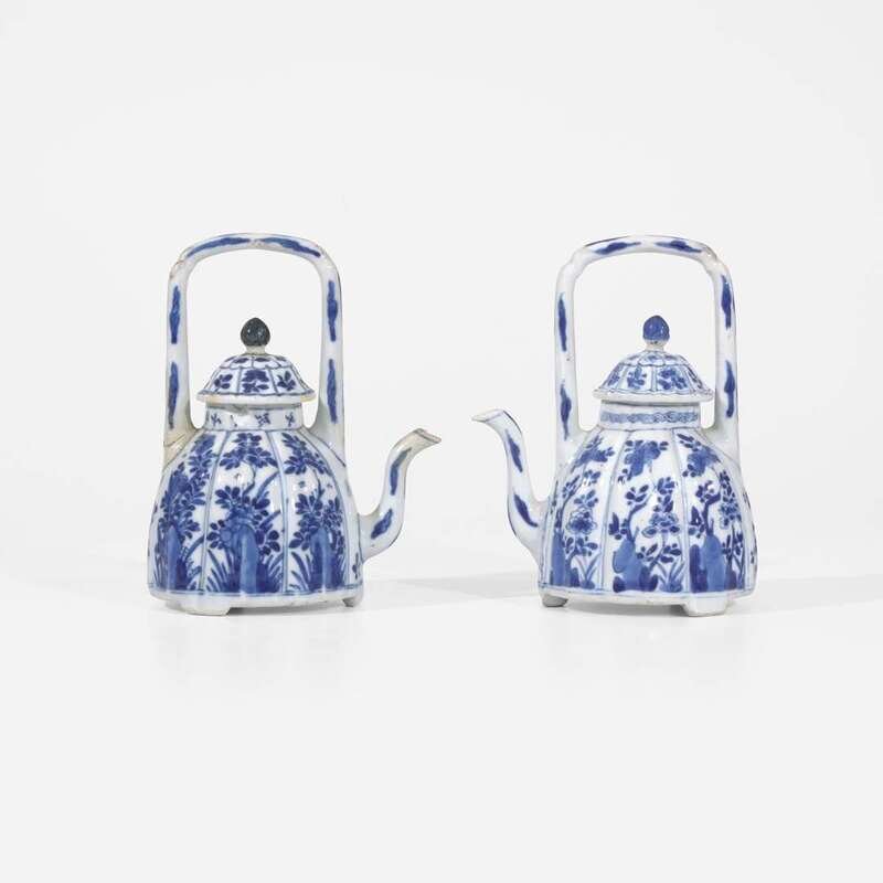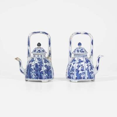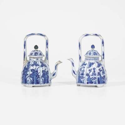 An associated pair of Chinese blue and white porcelain teapots and covers 青花带盖茶壶 或为一对 Kangxi period ???