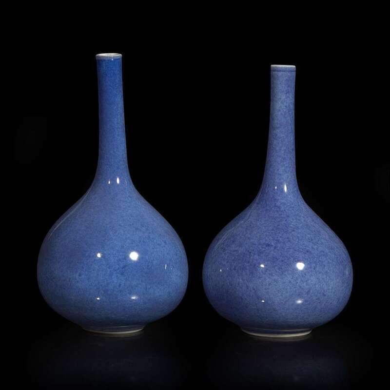 A pair of Chinese powder blue-glazed bottle vases 洒蓝地赏瓶一对 Kangxi period ???