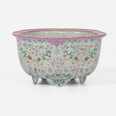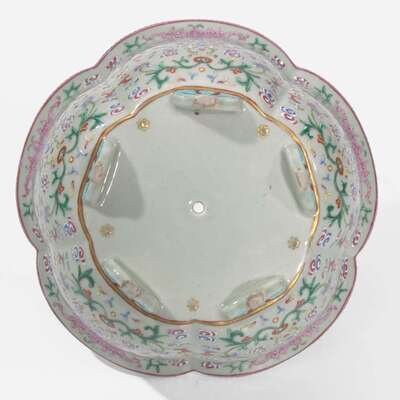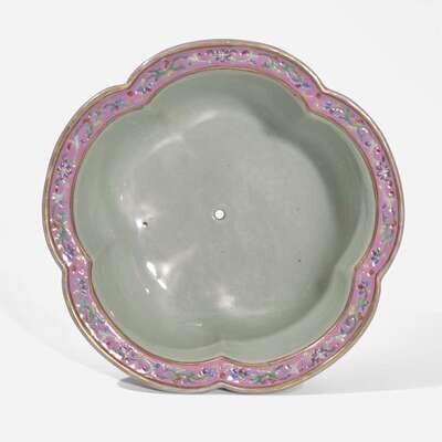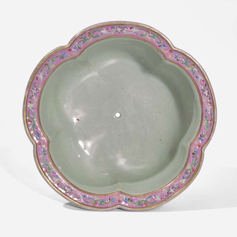 A Chinese famille rose-decorated pale celadon-ground five-lobed jardinière 粉彩青釉花盆 Possibly Jiaqing/Daoguang period ?????????