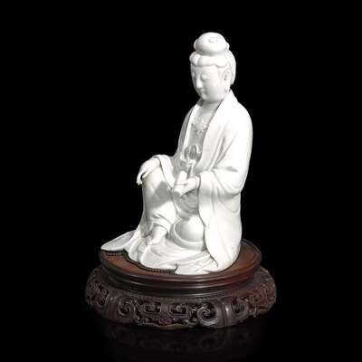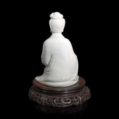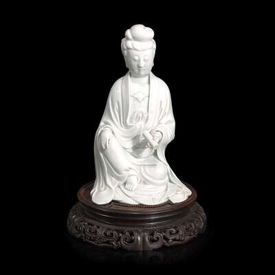 A Chinese blanc de Chine figure of Guanyin seated, with scroll 白瓷持卷轴观音像 Boji Yuren mark ?????