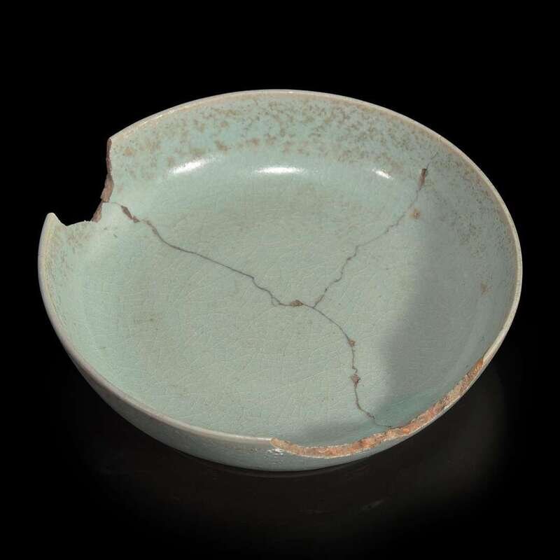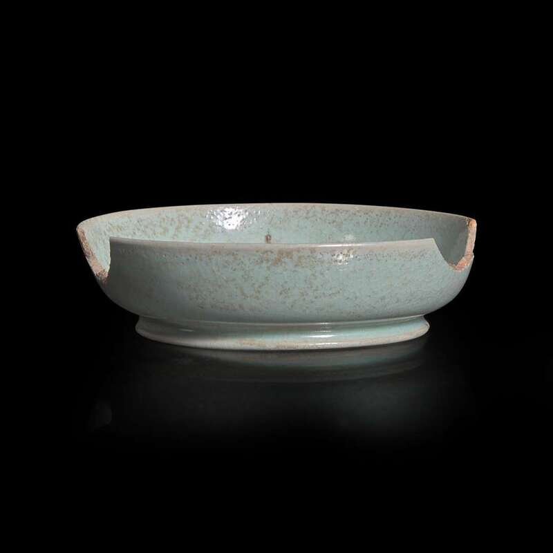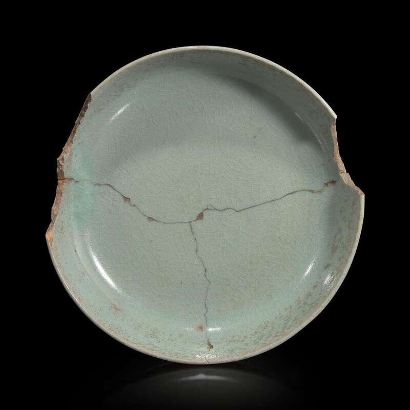 A Chinese Ru style pale blue-glazed dish or brushwasher 汝窑风格青瓷盘