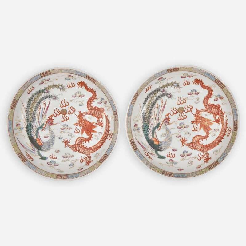 A pair of Chinese famille rose “Dragon and Phoenix” dishes 粉彩龙凤盘一对 Guangxu marks and of the period ??? ???