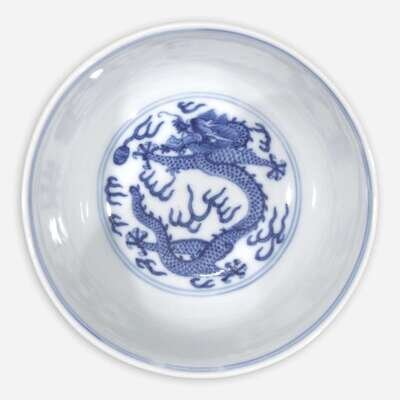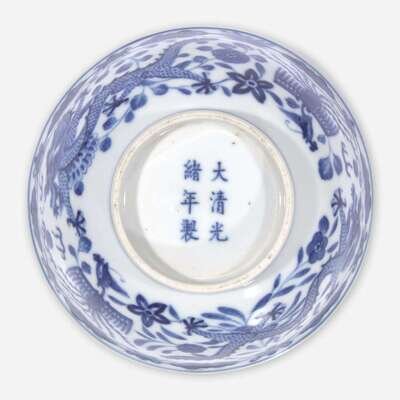 A Chinese blue and white porcelain "Dragon" bowl 青花龙纹碗 Guangxu six-character mark and possibly of the period ????? ??????