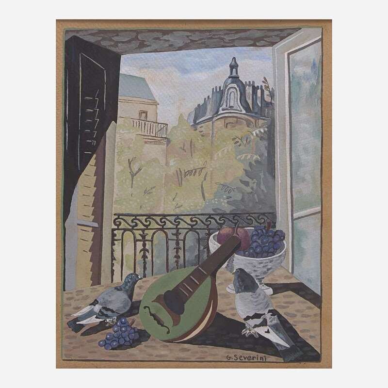 Gino Severini (Italian, 1883-1966) Nature Morte avec une Mandoline et Deux Colombes