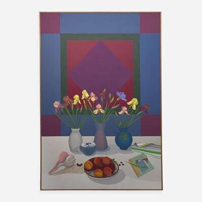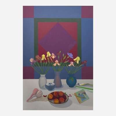 Elizabeth Osborne (American, b. 1936) Still Life with Amish Quilt