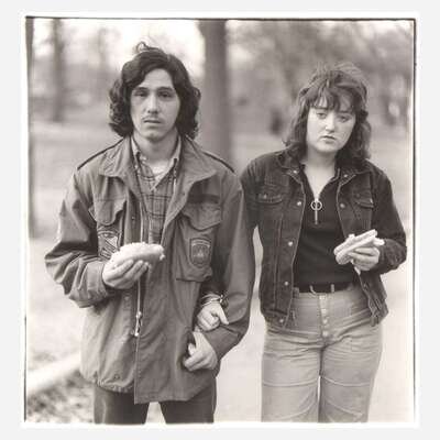 Diane Arbus (American, 1923-1971) A Young Man and His Girlfriend with Hot Dogs in the Park, N.Y.C.