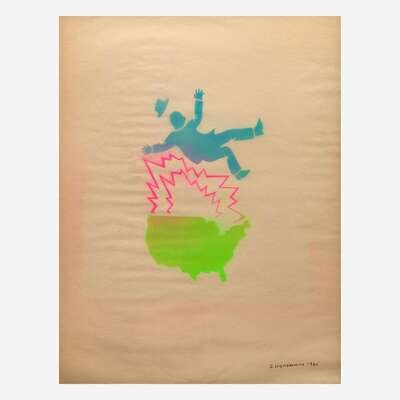 David Wojnarowicz (American, 1954-1992) Untitled (Falling Man and the Map of the USA)