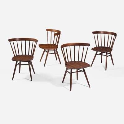 George Nakashima (American, 1905-1990) Set of Four Early "Straight-Backed" Chairs, New Hope, Pennsylvania, circa 1950