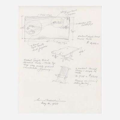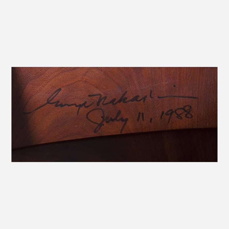 The chairs each signed and dated: "George Nakashima July 11, 1988" with client's name and studio notation: "(one piece seat)"