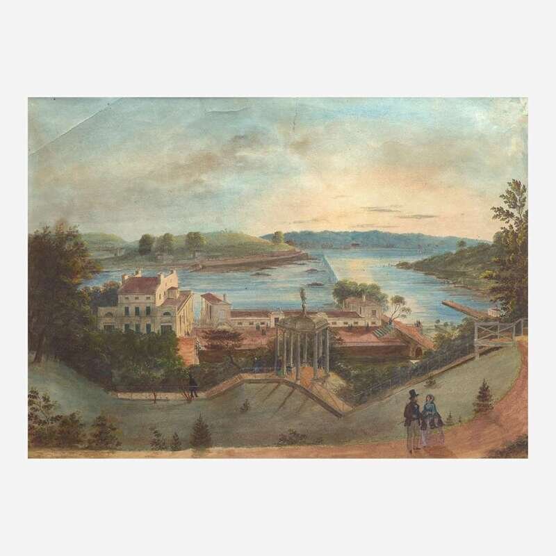 Attributed to Augustus Kollner (1813-1906) A View of Fairmount Water Works from Fairmount Summit
