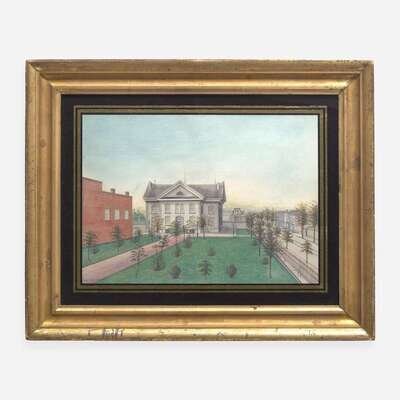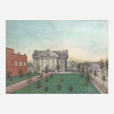 Signed, "Wm. Martin, Jr.", watercolor and crayon on paper, numerous paper gallery labels on verso, including: American/ Folk Art Gallery/ New York, N.Y.; Frank S. Schwarz & Son/ Philadelphia; and typed note recording exhibition at Pittsburgh University 10/39/ The Downtown Gallery," framed.