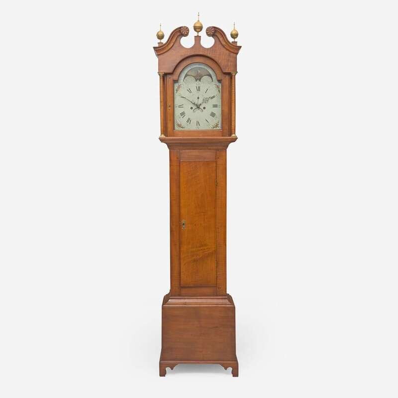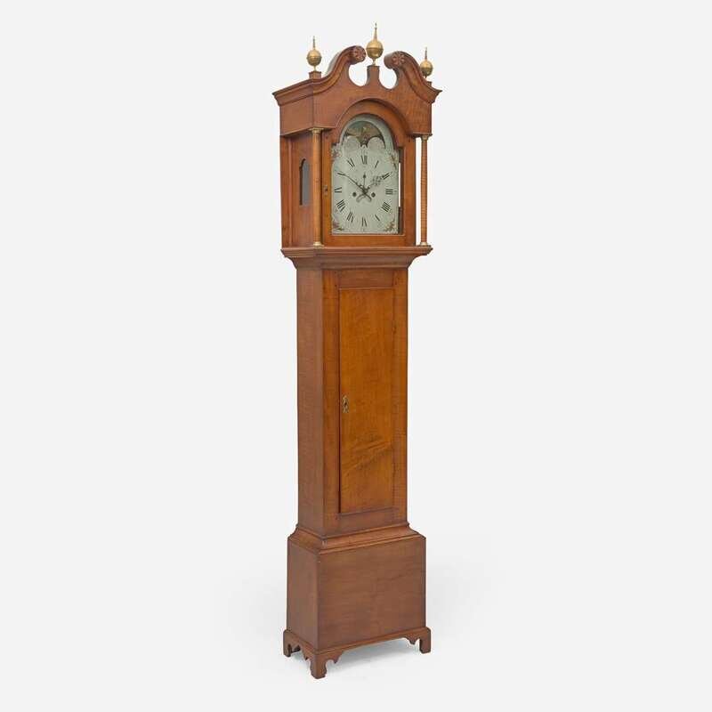 A Federal carved maple tall case clock Works signed Timothy Chandler (1762-1848), Concord, NH, the case attributed to David Young, Hopkinton, NH, circa 1800