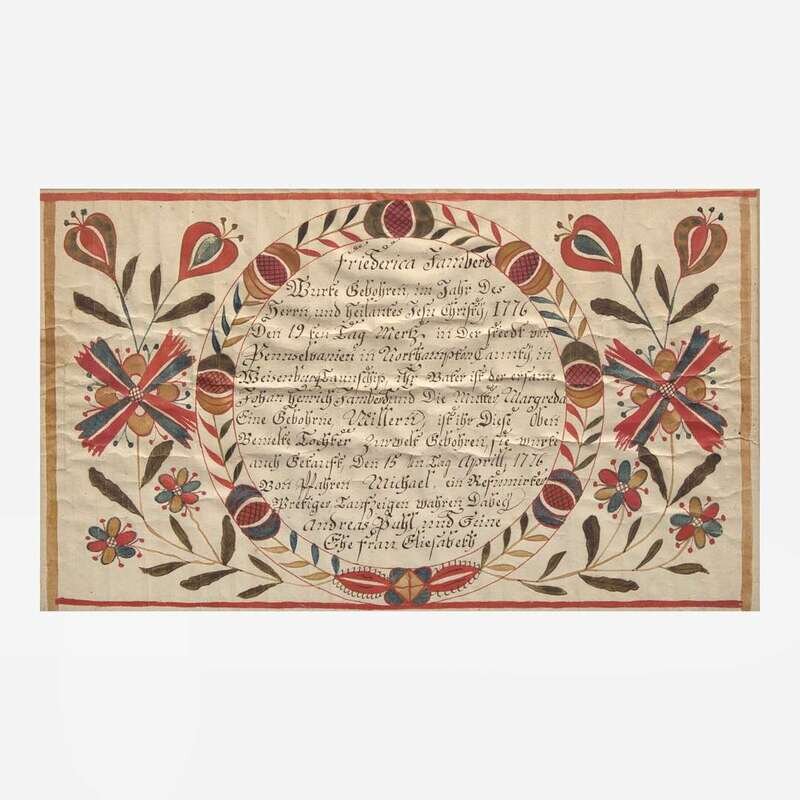 A Fraktur birth and baptism record for Friederica Vamberg Johann Conrad Gilbert (1734-1812)