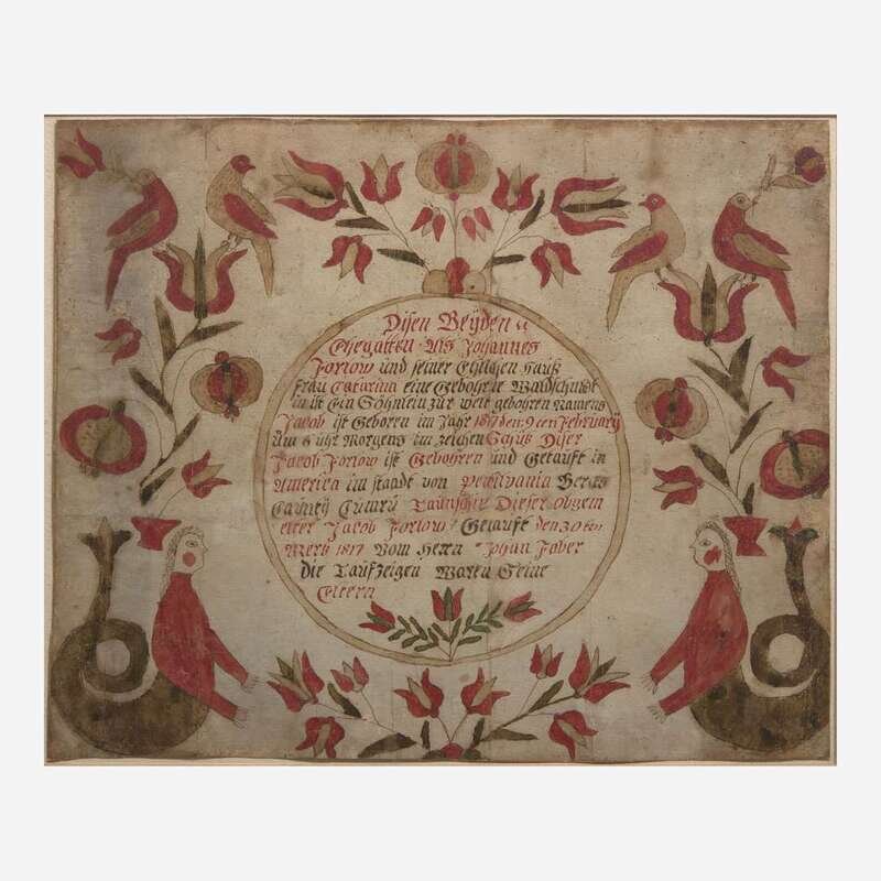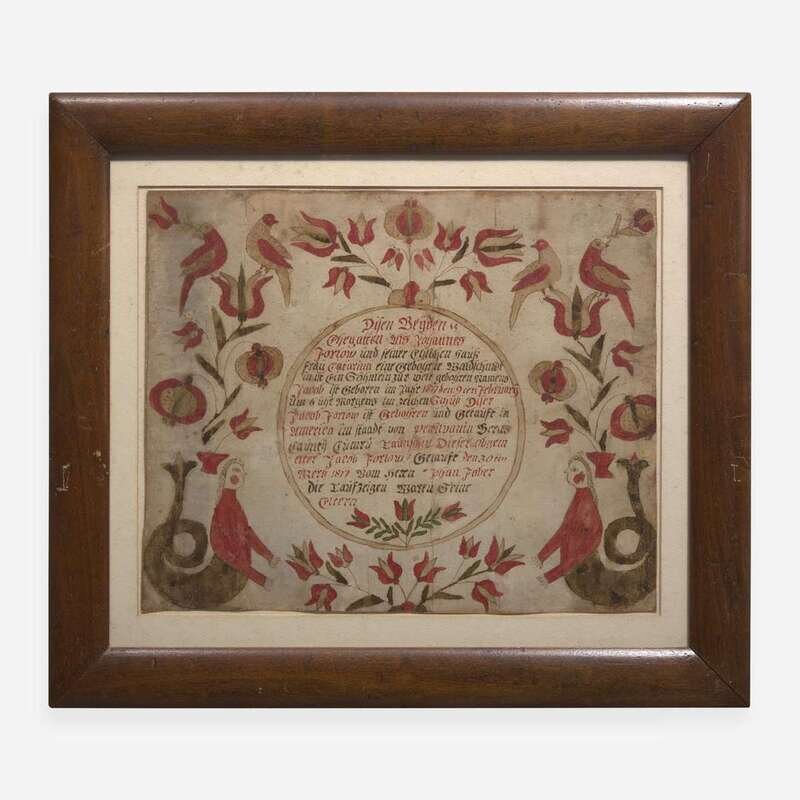 A Fraktur birth and baptism record for Jacob Farlow (1817-1877) Berks County, PA