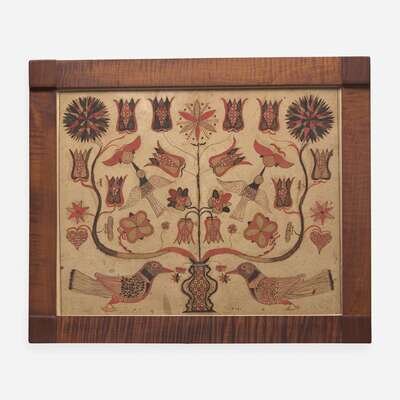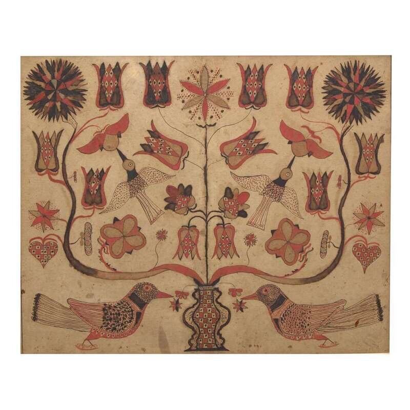 A Fraktur Drawing: A Flowering Vine with Birds Early 19th-century