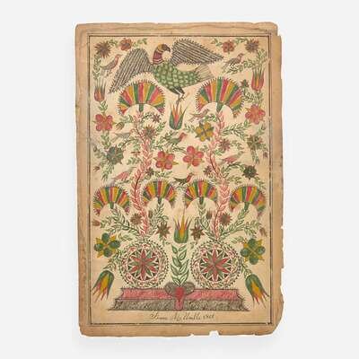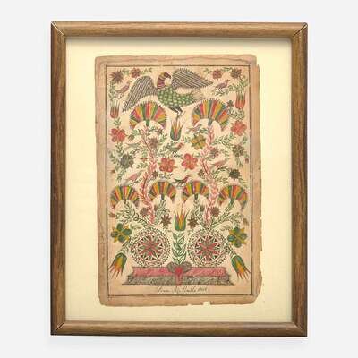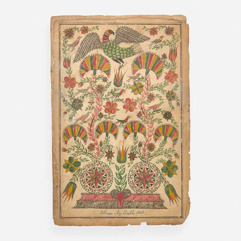 Watercolor and ink on paper, inscribed, "Isaac M. Umble 1801."