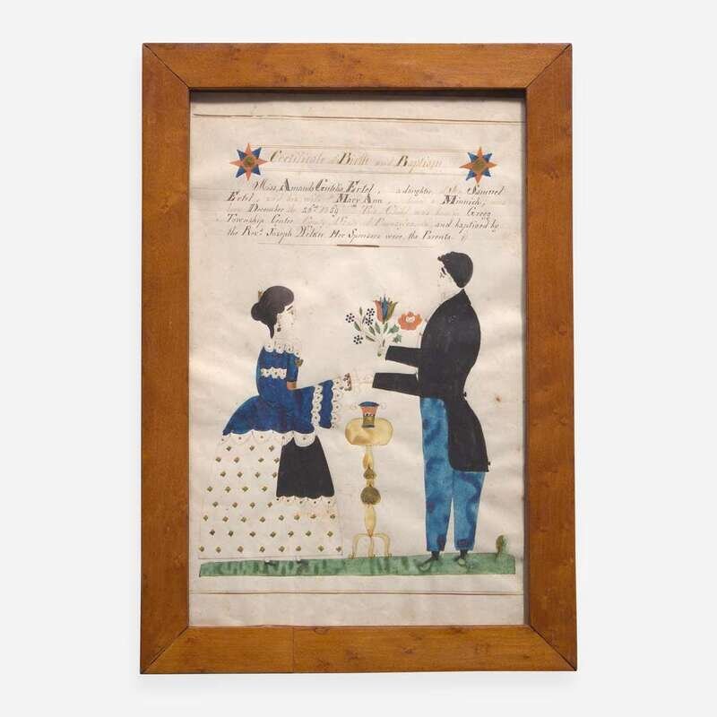 A Fraktur birth and baptism record for Amanda Ertel (b. 1859) Reverend Henry Young (1792-1861)