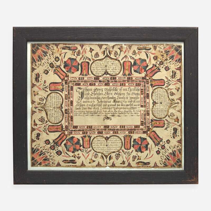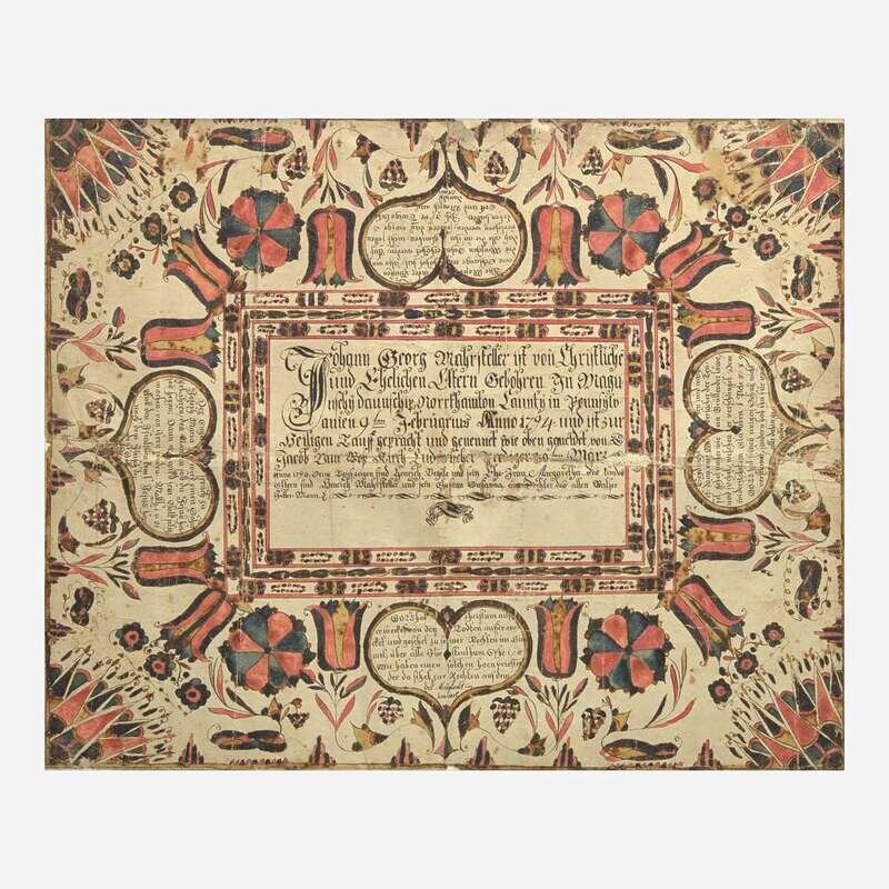 A Fraktur birth and baptismal certificate for Johan George Mahrsteller Heinrich Weiss (active c. 1776-1808)