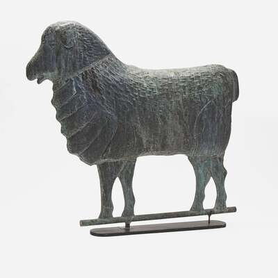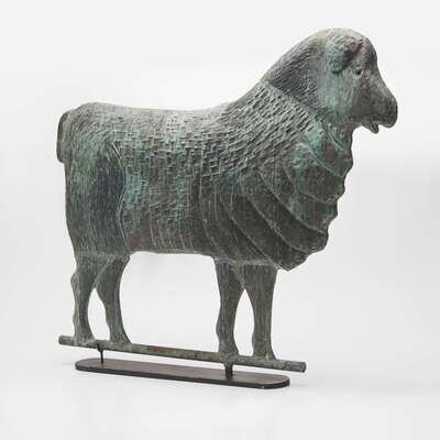 A patinated molded copper ewe weathervane late 19th century