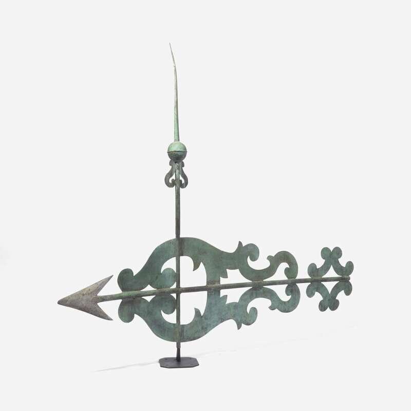A patinated sheet copper and cast zinc bannerette weathervane late 19th century