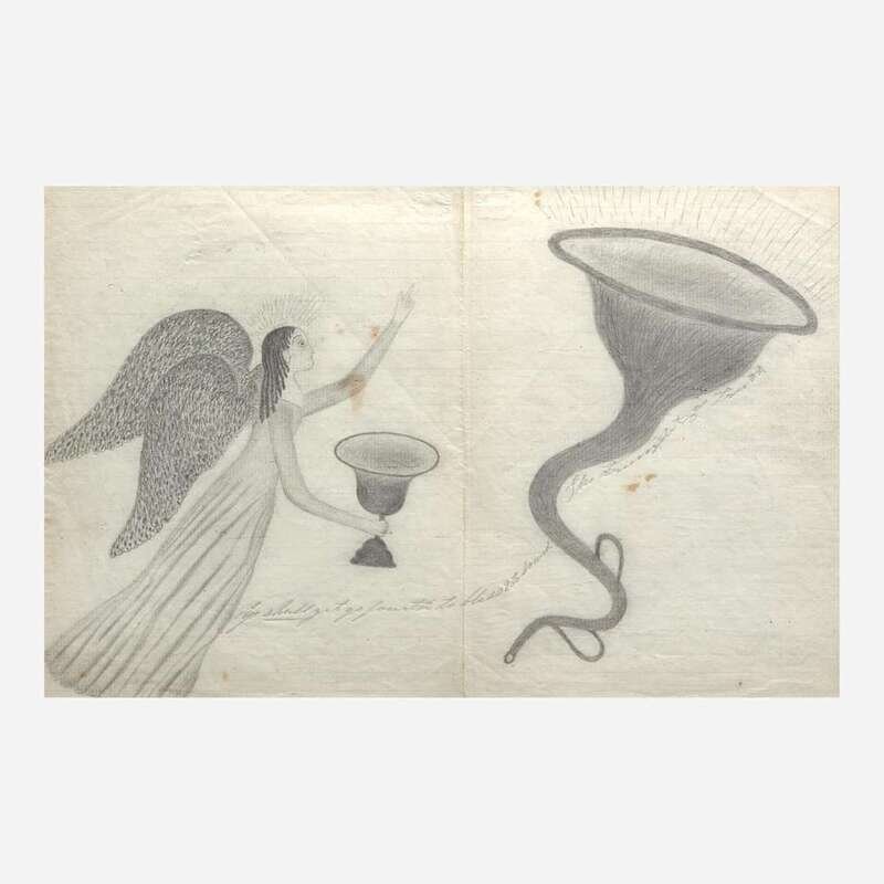 American School 19th century Two Mystical Drawings: The Trumpet of Truth and A Light to Them that Sit in Darkness