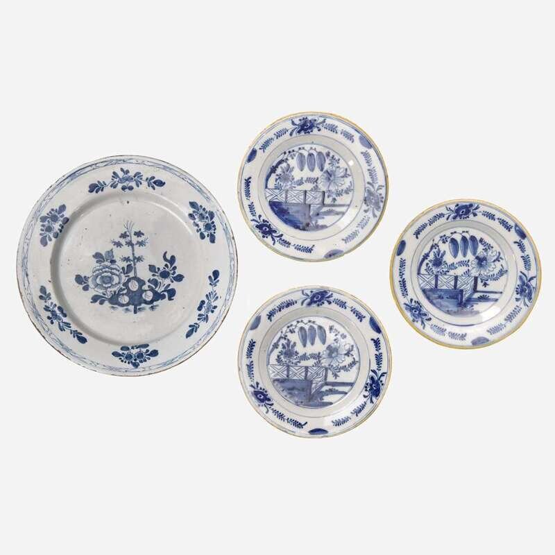 A group of four Delft blue and white "chinoiserie" plates 18th century