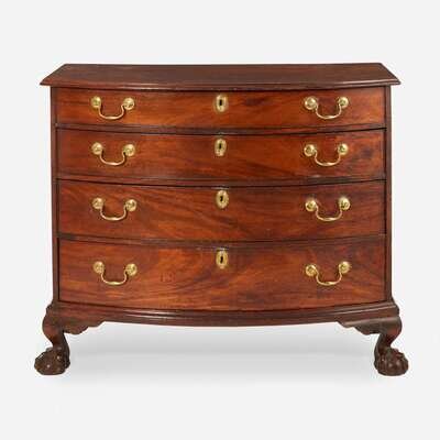 A Chippendale bowfront carved mahogany chest of drawers Probably Boston, MA, circa 1780