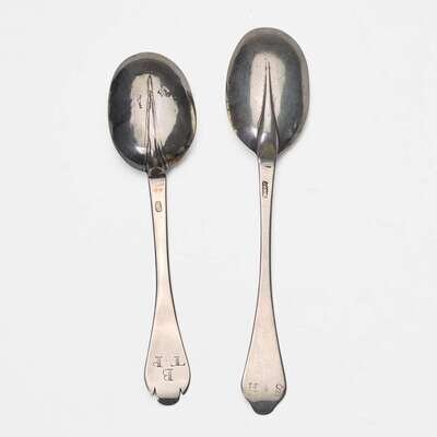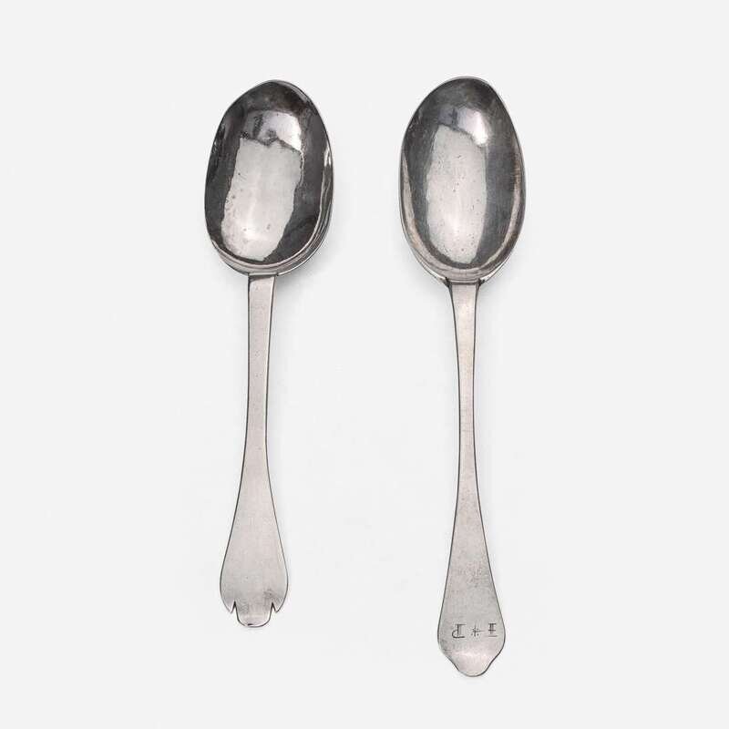 Two silver tablespoons William Cowell, Sr. (1682-1736) and John Burt (1692-1745), Boston, MA, circa 1710 and 1715
