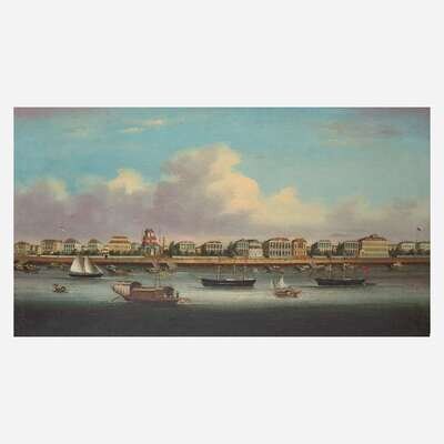 China Trade School 19th century The Bund in Shanghai Harbor, circa 1860