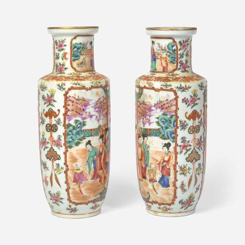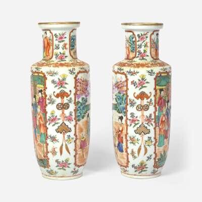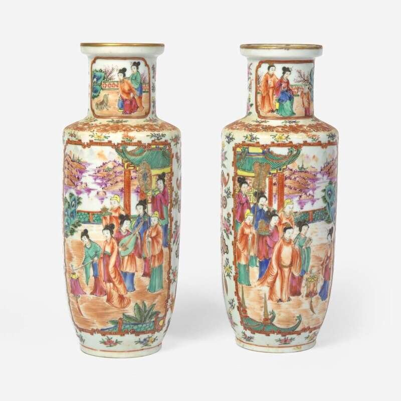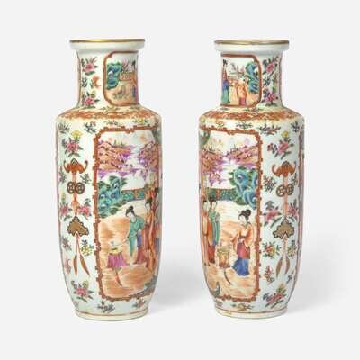 A pair of Chinese Export porcelain Famille Rose vases 19th century