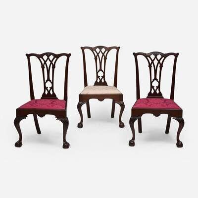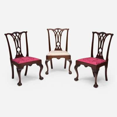 Three fine Chippendale carved mahogany side chairs Attributed to Thomas Tufft (1740-1788), Philadelphia, PA, circa 1770