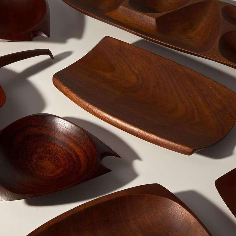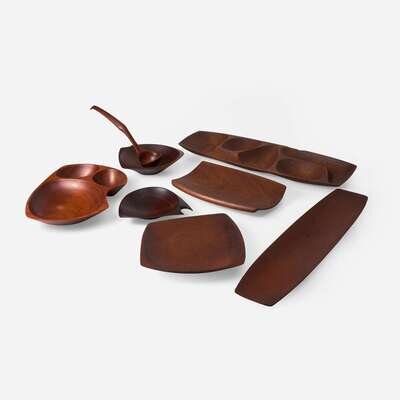 Donald Wright (American, 1930-2012) Group of Carved Wooden Trays and Bowls, USA, 1958-1964