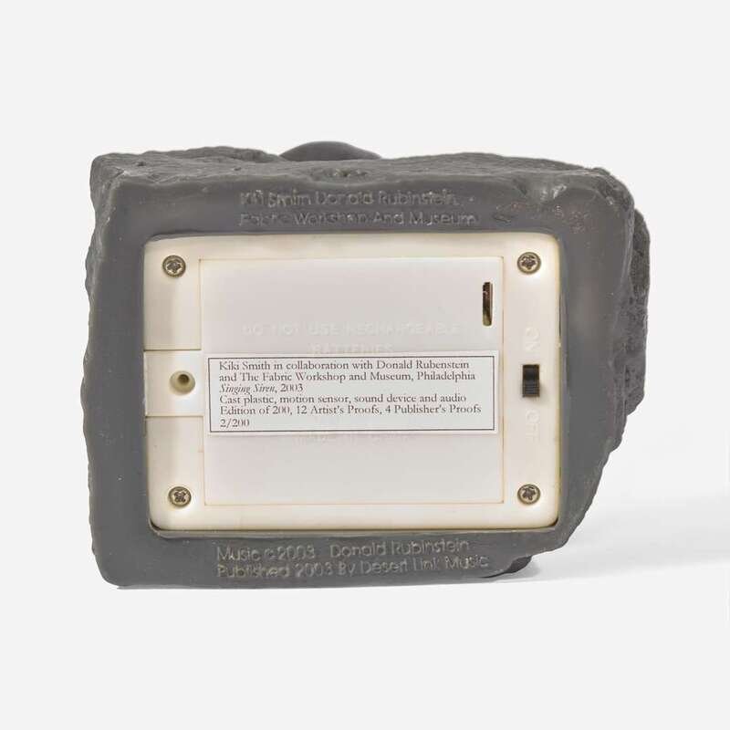 Applied paper label to base: "Kiki Smith in collaboration with Donal Rubinstein and The Fabric Workshop and Museum, Philadelphia, Singing Siren, 2003, Cast plastic, motion sensor, sound device, and audio, Edition of 200, 12 Artist's Proofs, 4 Publisher's Proofs"