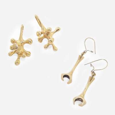 Donald Wright (American, 1930-2012) Two Pairs of Gold Earrings, USA, circa 1980s