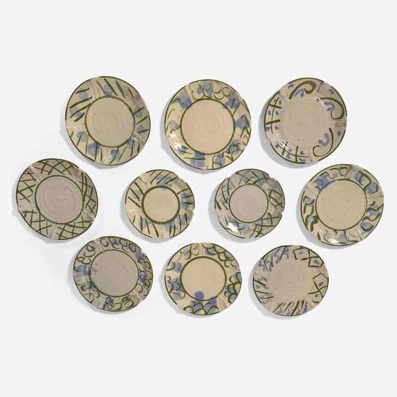 Betty Woodman (American, 1938-2018) Group of Ten Dinner Plates, USA, circa 1980
