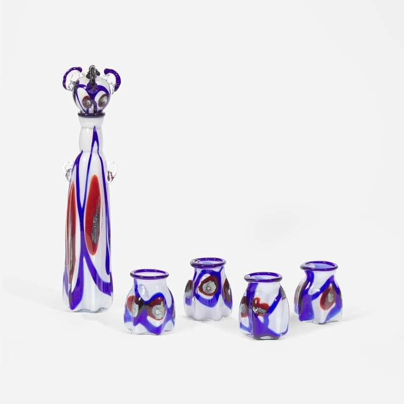 Thomas Kekic (American, 1943-1986) Glass Decanter with Four Tumblers, USA, 1972
