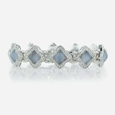 A David Yurman Quatrefoil Diamond and Chalcedony Bracelet