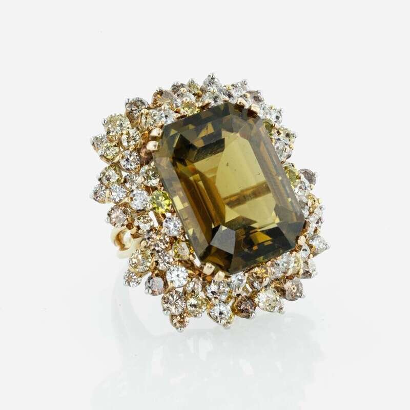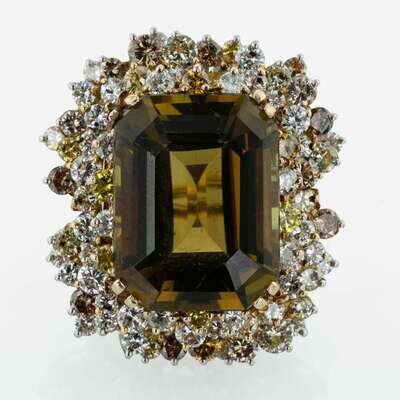 A Natural Tourmaline, Diamond, and 18K Yellow Gold Ring