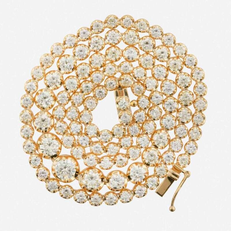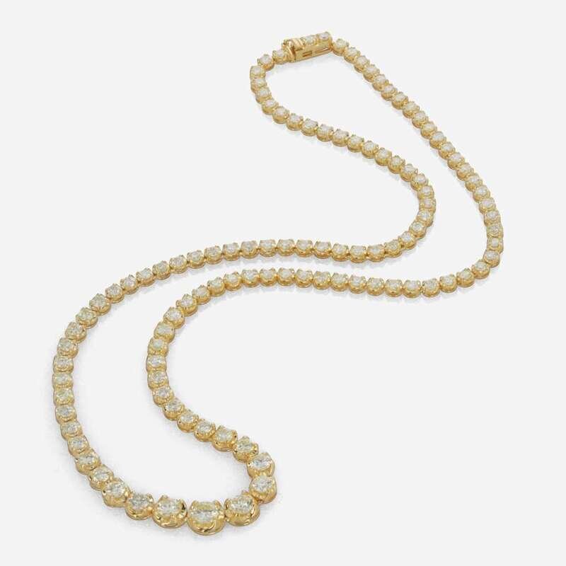 A Diamond and 14K Yellow Gold Rivière Necklace