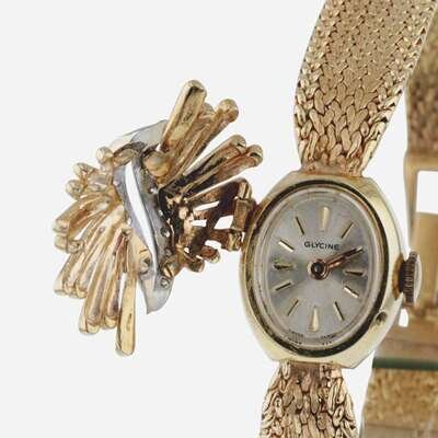 Glycine Concealed Lady's Gold and Diamond Dress Watch Swiss