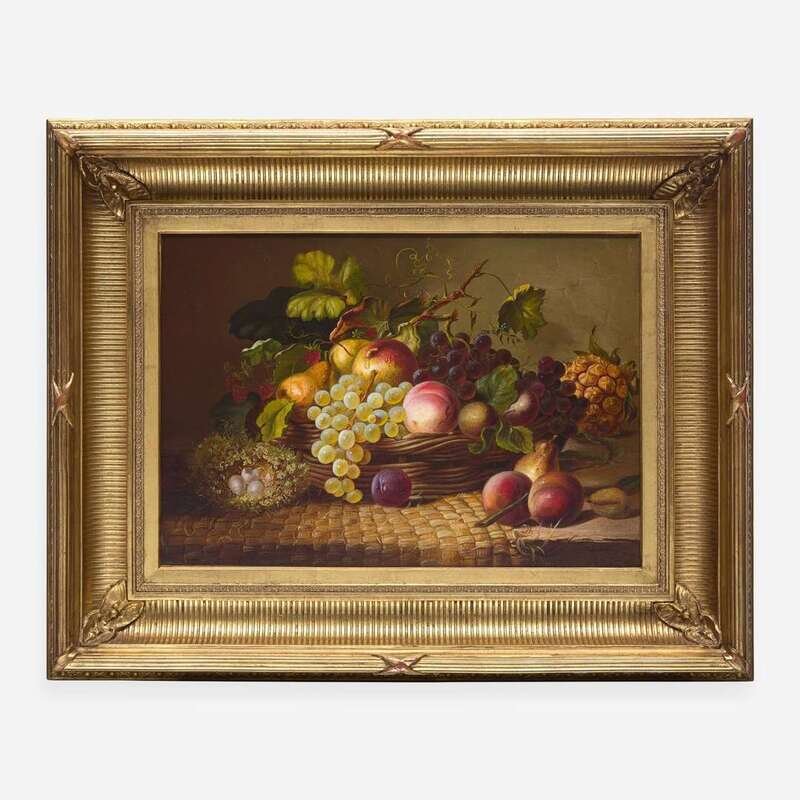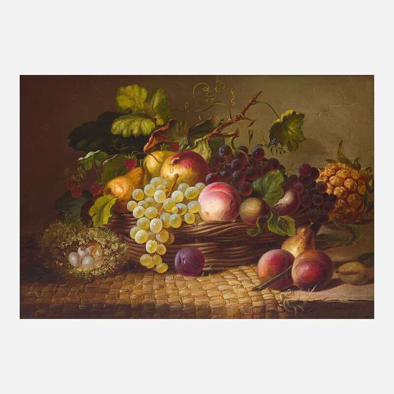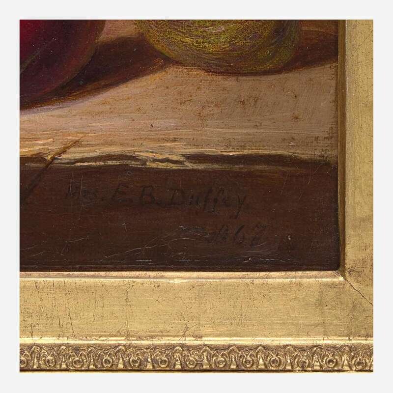Eliza B. Duffey (American, 1838–1898) Still Life with Fruit and Eggs on Tabletop