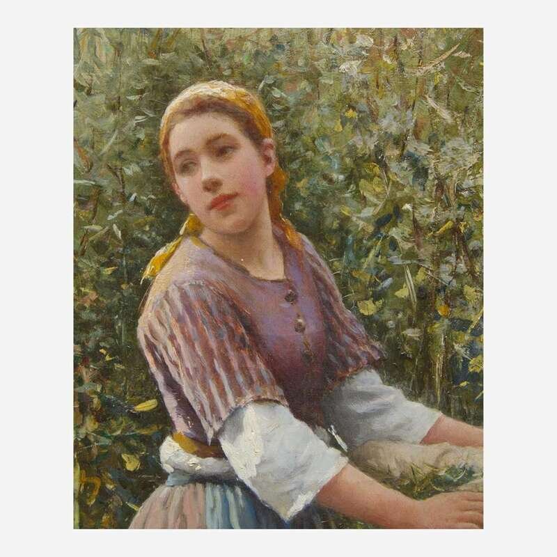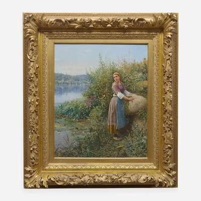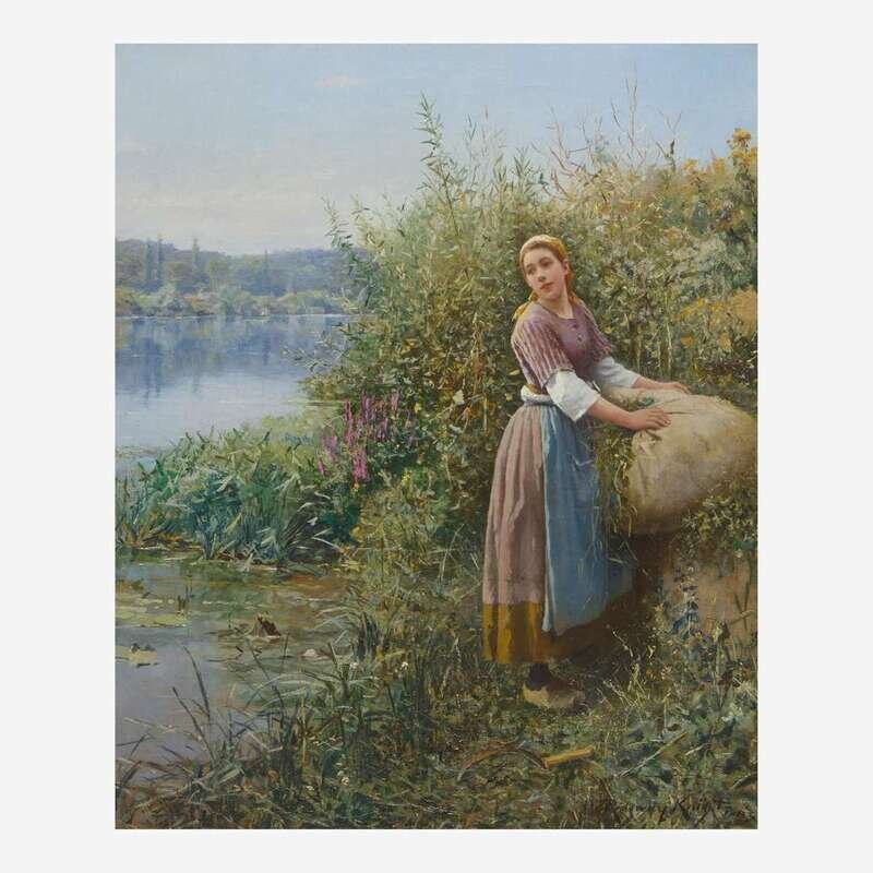 Daniel Ridgway Knight (American, 1839–1924) French Peasant Girl Collecting Reeds