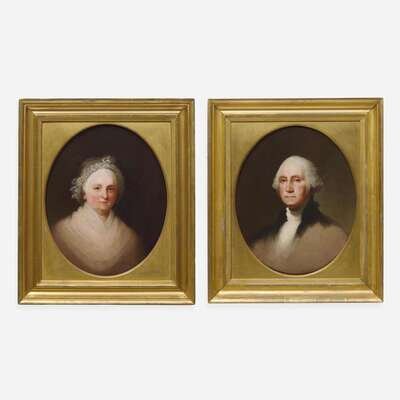 Jane Stuart (American, 1816-1888) Portrait of George and Martha Washington (A Pair) - After originals by Gilbert Stuart