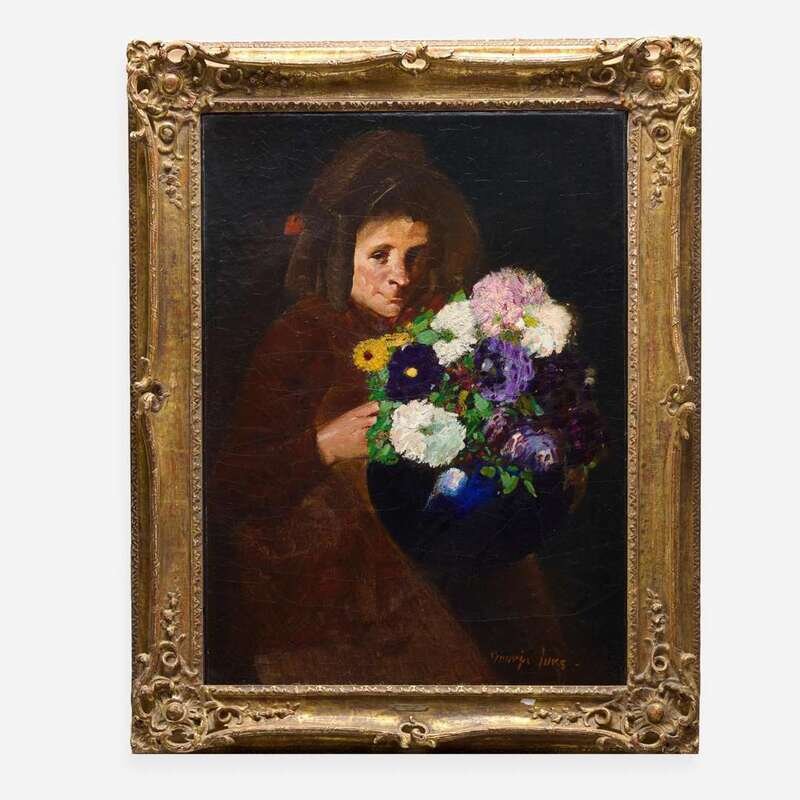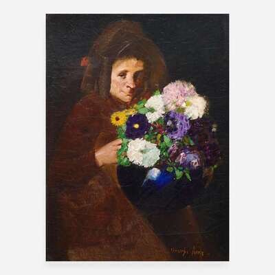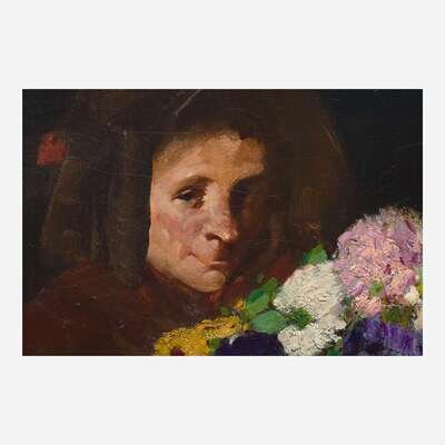 George Benjamin Luks (American 1866-1933) Woman with Bouquet (Old Flower Woman)