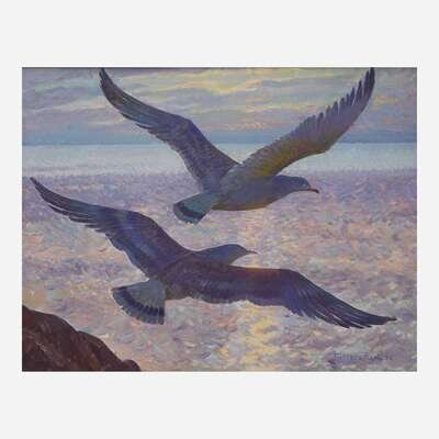 Gifford Beal (American, 1879-1956) Gulls in Moonlight