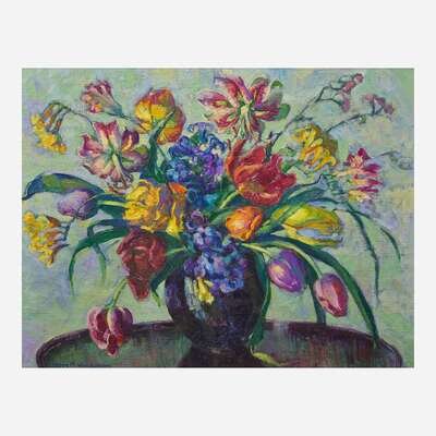 Helen Elizabeth Mills Weisenburg (American, 1885-1943) Still Life with Tulips on a Tabletop